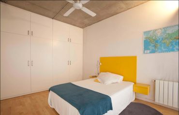 Segunda Planta (35 m2): una habitación doble, 1 baño, una amplia terraza con vistas a la piscina y otra terraza sobre la calle.